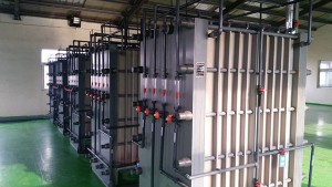 通過擴(kuò)散滲析設(shè)備分離出的堿濃度偏低,通過均相膜電滲析進(jìn)行回收堿液的濃縮,可以提高堿的濃度,進(jìn)行回用。